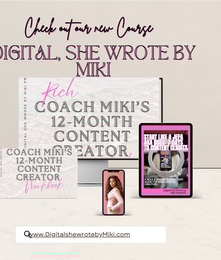 Coach Miki’s Content Creator Course is a step-by-step, year-long system that helps bold women plan, post, and profit with purpose—turning their content into confidence, community, and consistent income.